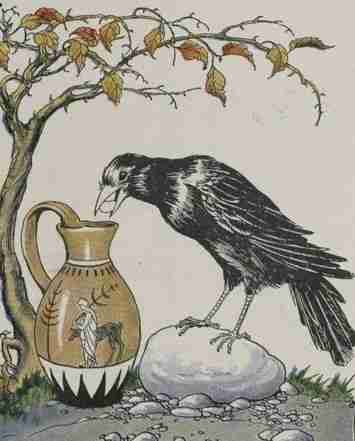 « backIn a spell of dry weather, when the Birds could find very little to drink, a thirsty Crow found a pitcher with a little water in it. But the pitcher was high and had a narrow neck, and no matter how he tried, the Crow could not reach the water. The poor thing felt as if he must die of thirst.