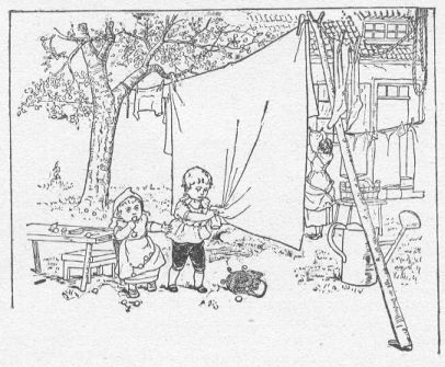 Tommy and Jeannie, of course, were there too, and very busy, as they had taken it into their heads to plant all the clothes-pegs they could lay hands upon, under the idea that they would soon grow into cabbages!