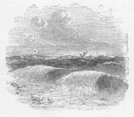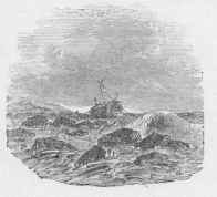 A sledge party left to find the Discovery, but returned exhausted, and Petersen was nearly lost. He afterwards died, poor fellow, and was buried by his comrades on Cairn Hill, on the 14th of May. We have not space to follow all the sledging expeditions. We must condense the information and the interest. For two months and a half this, the most monotonous of all travelling, was continued. The labour was most severe and incessant, the distance made only a mile or two a day. Scurvy began its ravages, and the northern expedition had been nearly overcome, when Lieutenant Parr returned to the ship for assistance. Summer had arrived by this time. Immediate help was dispatched, but it was no easy task to find the men. Four of the party were alive, one had died. The sick man had been dragged on the sledge thirty-nine days, and they had buried him after all in a solitary spot in the far north—“a paddle and a batten” made a rude cross, and the sketch shows it most effectively in Doctor Moss’s book. Five only of the seventeen of the party came back in working condition, and they were nearly exhausted.