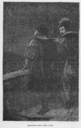 While Columbus and his pilot were studying it, they heard a shout, and looking up saw Pinzon standing at the stern of the Pinta, crying, “Land! land! Señor, I claim my reward!”
