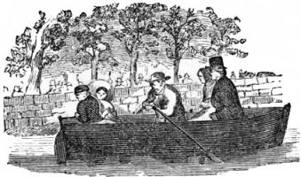 Geneva is situated upon the confines of France, Switzerland, and Sardinia, at the outlet of the Lake of Geneva, which is perhaps the most beautiful, and certainly the most celebrated, lake in Switzerland. It is shaped like a crescent,—that is, like the new moon, or rather like the moon after it is about four or five days old. The lower end of the lake—that is, the end where Geneva is situated—lies in a comparatively open country, though vast ranges of lofty mountains, some [Pg 12]of them covered with perpetual snow, are to be seen in the distance all around. All the country near, however, at this end of the lake, is gently undulating, and it is extremely fertile and beautiful. There are a great many elegant country seats along the shore of the lake, and on the banks of the River Rhone, which flows out of it. The waters of the lake at this end, and of the river which issues from it, are very clear, and of a deep and beautiful blue color. This blue color is so remarkable that it attracts the attention of every one who looks down into it from a bridge or from a boat, and there have been a great many suppositions and speculations made in respect to the cause of it; but I believe that, after all, nobody has yet been able to find out what the cause is.