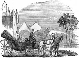 The place of departure in France for Geneva is Lyons. If you look upon the map you will see the situation of Lyons on the River Rhone, almost opposite to Geneva. There is a railroad from Paris to Lyons, and so on down the Rhone to Marseilles. But from Lyons up to Geneva—which is likewise situated on the Rhone, at the place where it issues from the Lake of Geneva—there was no railroad at the time of Rollo's visit, though there was one in the process of construction. The party were obliged to travel by diligence on that part of the journey. The diligence is the French stage coach. The diligence leaves Lyons in the evening, and travels all night. As Mr. Holiday arrived at Lyons the evening before, Rollo had the whole of the day to walk about the town before setting out for his evening ride. His father gave him leave to go out alone, and ramble where he pleased.