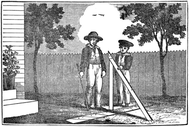 “And you might put a piece of white paper, or a card down first,” continued Rollo’s mother, “and drive the pin through that, and then mark the places where the end of the shadow comes every day, directly [Pg 20] on the card, with a fine pen. Thus you could be a great deal more exact than you can in chalking upon a barn floor.”