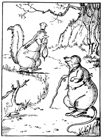 "Yo' cert'nly are most polite, Brer Skunk. Yo' cert'nly are most polite. Yo' are a credit to your bringing up, but politeness always did run in your family. There is a saying that han'some is as han'some does, and your politeness82 is as fine as yo' are han'some, Brer Skunk. Ah'll just step one side and let yo' go first just to show that Ah sho'ly does appreciate your friendship," said Unc' Billy.