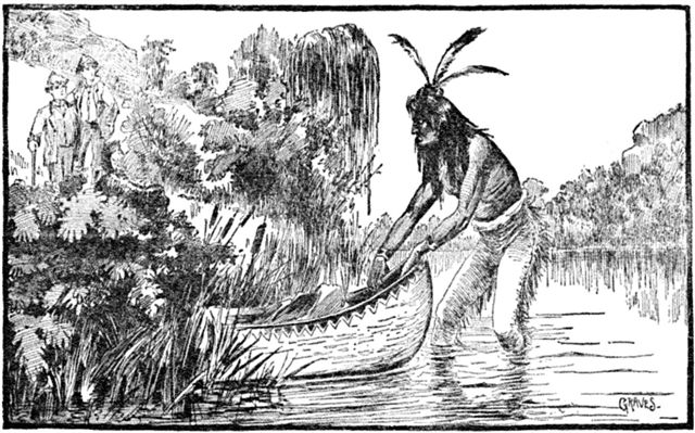 "The Indian drew forth a tiny canoe and shoved it into the water"