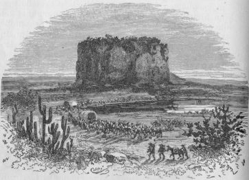 Ratsastaja, joka istui pienen, harmaan papurikkohevosen sel�ss�, kulki lukuisan matkueen etunen�ss� parin, kolmen my�skin ratsastavan herrasmiehen rinnalla. Heit� seurasi muita ratsastajia ja suuria s�kkikankaalla verhottuja tavaravaunuja. N�it� viimemainituita, jotka olivat eritt�in k�mpel�tekoisia ja kuormana tuhansia erilaisia esineit�, veti kutakin kahdeksan muulia. Vaunut olivat oikeita py�rivi� taloja, joiden asukkaina oli kokonaisia siirtolais-perheit�. Muulit, joita k�ytettiin kuormajuhtina, muodostivat edell�mainittujen takana atajo'n, se on raition, joka pitk�n� jonona levisi j�lkijoukoksi. Vihdoin mahdottoman suuri lauma sarvikarjaa, jota paimenet ajoivat ja joka muodosti vihoviimeisen osaston koko matkueessa.