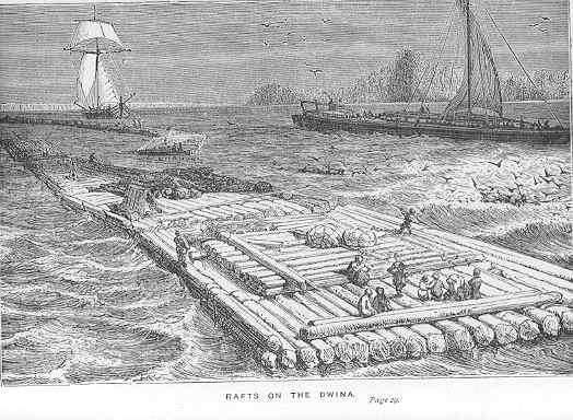 The immense size of the rafts which are floated down some of the great rivers of the world may be gathered from the following engraving, which represents a raft on the Dwina, one of the great rivers of Russia.