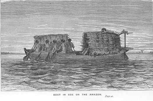 In order to show that the paddle of the canoe is more natural to man than the oar, we present a picture of the canoe used by the Indians of the Amazon in South America. Here we see thar the savages of the south, like their brethren of the north, sit with their faces to the bow and urge their bark forward by neans of short paddles, without using the gunwale as a fulcrum. The oar is decidedly a more modern and a more scientific instrument than the paddle, but the latter is better suited to some kinds of navigation than the former.