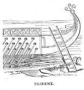 We have no very authentic details of the minutiae of the form or size of ancient ships, but antiquarians have collected a vast amount of desultory information, which, when put together, enables us to form a pretty good idea of the manner of working them, while ancient coins and sculptures have given us a notion of their general aspect. No doubt many of these records are grotesque enough, nevertheless they must be correct in the main particulars.