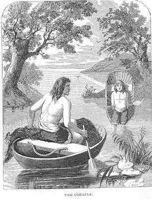The coracle, a basket-boat of the most primitive description, is still occasionally met with in South Wales. It is neither more nor less than a large wicker basket covered with a hide, and is tub-shaped, and clumsy to a degree. When the Romans invaded Britain, this species of boat was in common use.