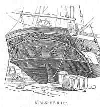A large Chinese junk rises high out of the water; there are two or more decks aft above the main-deck, painted and carved with various devices; and the cabins are often luxuriously furnished according to Celestial tastes. If you look at any representation of a junk, you will notice that the rudder is very broad, resembling somewhat the rudder of a canal barge. In spite of its primitive look, it has, after all, something picturesque about it; but we fancy that we would rather contemplate it in a picture than sail in one across the Atlantic.