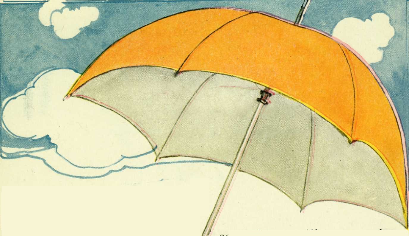 And one day, when Jackie and Peggs were playing in the garden with Kernel Cob and Sweetclover, the sun was very hot, so Peggs ran and got a parasol and put it over the dolls so they wouldn't wilt.