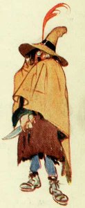 By this time Peggs had finished the uniform for Jackie's soldier and a hat of newspaper with a great plume of cornsilk and a lot of medals which were cut from the gold leaf that comes on a card of buttons. And when they were all sewed on the jacket, he cut out a sword from the gold leaf and made hands and feet from the corn husk. And he colored the eyes with black ink and the lips with red, and, much before you could say "Crickety," the soldier was all finished.