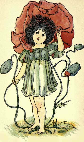 Then the Poppy spoke out. She did not appear to be in the least bit shy, and waved the scarlet folds of her mantle about her head, and all the black fringe of seed trembled and stood out like a halo.