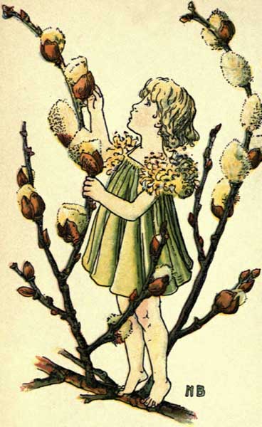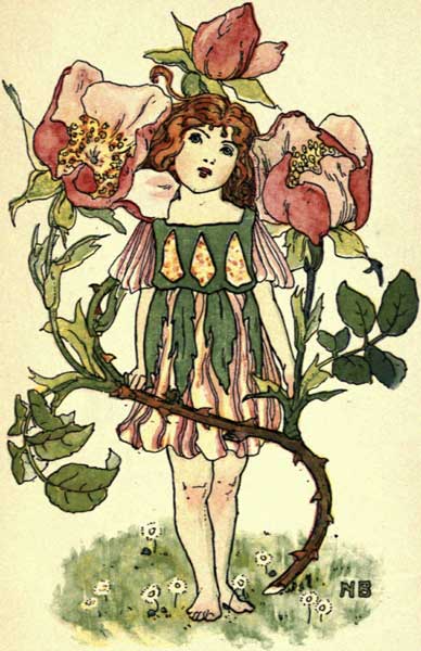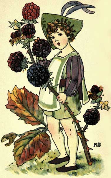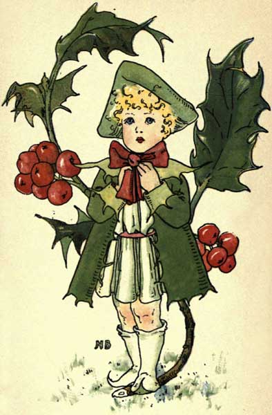 Then forward came the four linked hand in hand and curtsied. Then the Holly kissed the Mistletoe, and the Blackberry and the Spindleberry raised their banners on high, while all the flowers marched through hand in hand.