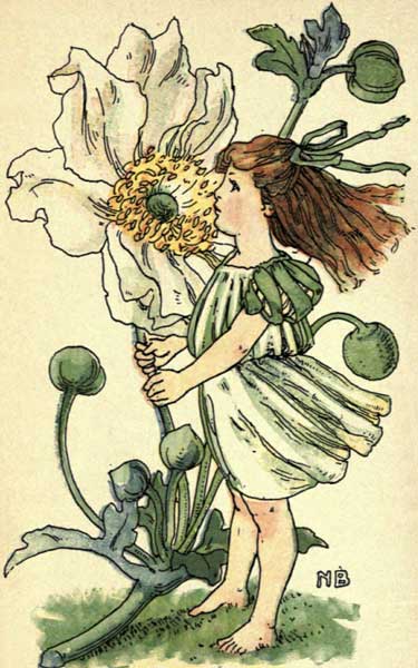 The Snowdrop turned to obey the fairy's command, and presently returned holding the Hawthorn and the Poppy by the hands.