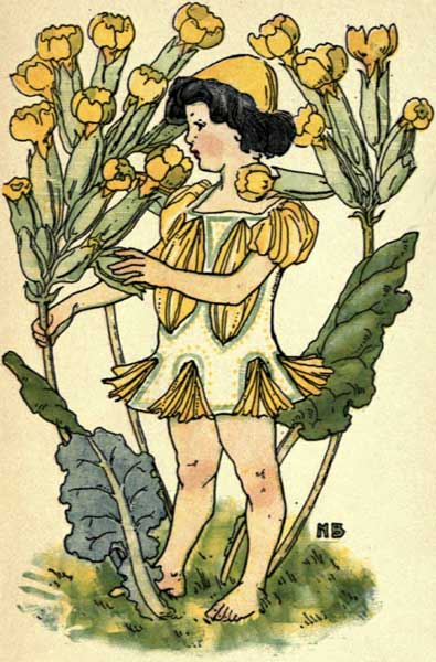 “Oh, do not weep then, sweet little sisters,” said the Cornflower, gently. “See, Cowslip and I will take you by the hand and lead you to a bright, clear patch by the tree of the Lady Elder, where we will play together till morning.”