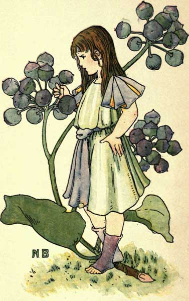 “O, hasten, Blackberry,” she said. “Hasten, Spindle, and Holly and Misletoe, for before the coldest hour that precedes the dawn has passed over the earth your little sisters must all be back in their little warm beds.”