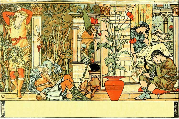 He stands—he stoops to gaze—he kneels—he wakes her with a kiss.