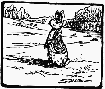 Benjamin climbed over the wall, into a meadow. He found another mole trap newly set; he was still upon the track of Tommy Brock. It was getting late in the afternoon. Other rabbits were coming out to enjoy the evening air. One of them in a blue coat by himself, was busily hunting for dandelions.—"Cousin Peter! Peter Rabbit, Peter Rabbit!" shouted Benjamin Bunny.
