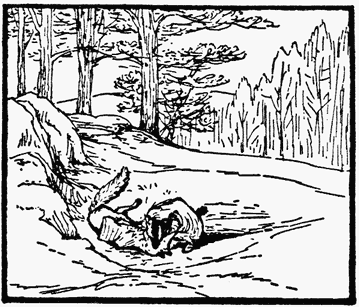 Mr. Tod slapped his stick upon the earth and fumed; he guessed where Tommy Brock had gone to. He was further annoyed by the jay bird which followed him persistently. It flew from tree to tree and scolded, warning every rabbit within hearing that either a cat or a fox was coming up the plantation. Once when it flew screaming over his head—Mr. Tod snapped at it, and barked.