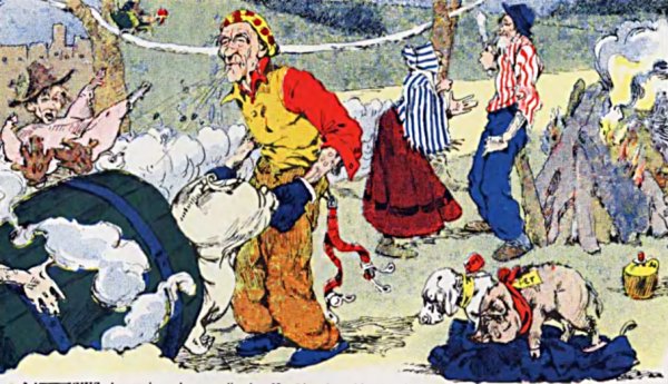 Boom-a-lam! went de cannon, an’ de creeturs, dey lit out