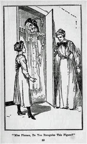 And so, when little Miss Pierson stopped in front of one of the smallest and meanest cottages on River Street, the girls knew she must, indeed, be very poor. The house, small and forlorn, presented a sad countenance streaked with tear stains from a leaky gutter. An uneven pavement led to the front door, which bore a painted sign: "Plain Sewing."