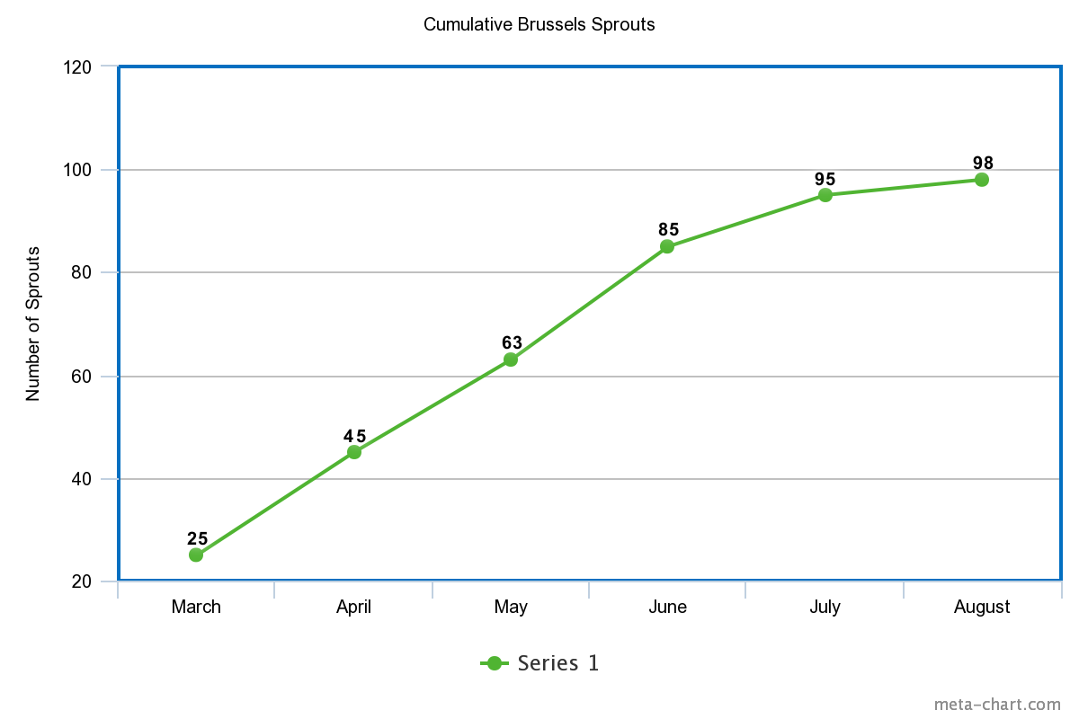 Here are cumulative bar and line graphs for Sam's brussels sprouts collection:
