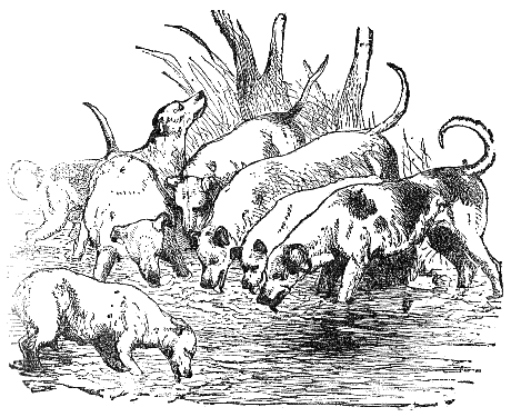 « backSome hungry Dogs saw a number of hides at the bottom of a stream where the Tanner had put them to soak. A fine hide makes an excellent meal for a hungry Dog, but the water was deep and the Dogs could not reach the hides from the bank. So they held a council and decided that the very best thing to do was to drink up the river.