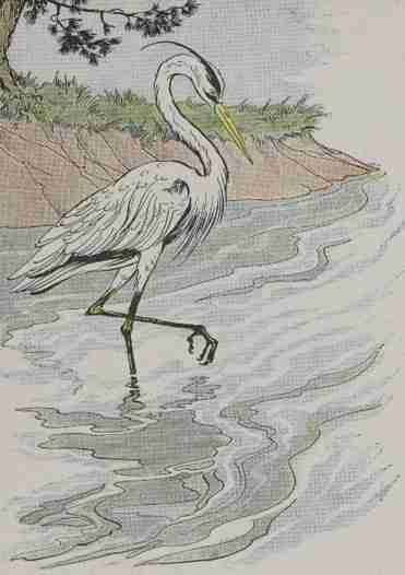 « backA Heron was walking sedately along the bank of a stream, his eyes on the clear water, and his long neck and pointed bill ready to snap up a likely morsel for his breakfast. The clear water swarmed with fish, but Master Heron was hard to please that morning.