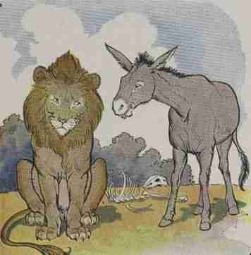 « backOne day as the Lion walked proudly down a forest aisle, and the animals respectfully made way for him, an Ass brayed a scornful remark as he passed.