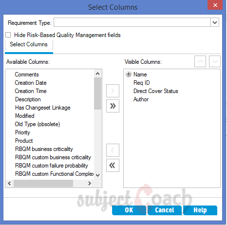 Select any column and click on ">>" button. The selected column moves to visible columns list. After selecting the relevant columns, Click "OK" and user will be able to see the selected columns in the view.
