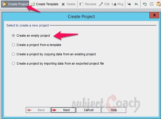 Step 2: When the Create Project Wizard opens, user needs to Select "Create an Empty Project" and click "Next".