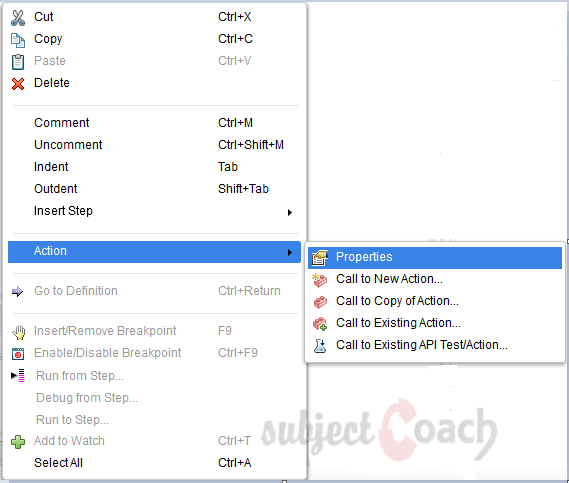 Step 1: Right Click on the Scripting area and click on “Call to New Action" as shown below