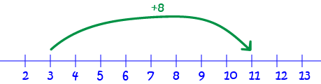 We end up at \(11\). So, \(3 + 8 = 11\).