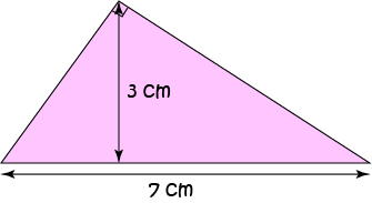 Solution: The base has length \(7\) cm, and the height is \(3\) cm, so the area is